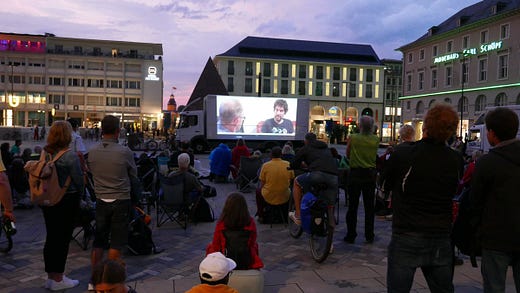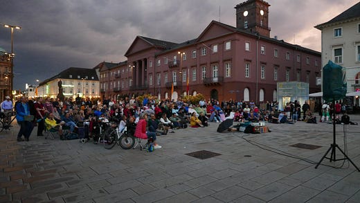 Wem das Wohnzimmer übrigens zu klein ist, der kann auch einfach eine Demo anmelden, Beamer und Leinwand aufstellen und den Film öffentlich zeigen. Wie kürzlich auf dem Marktplatz in Karlsruhe geschehen. Danke, für eure Initiative!