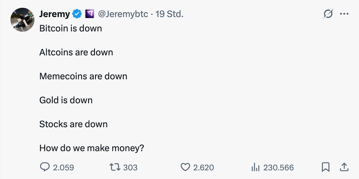 Wer totale Sicherheit sucht, wird sicher in der totalen Desillusionierung landen. Die Frage stellt sich dann, wie man sich einen Systembruch, einen Systemwechsel denn tatsächlich vorgestellt hat: So wie den Ausgang eines Fußballspiels, wo irgendwann abgepfiffen wird und es heißt, danke das war’s, es steht 21 zu null für Bitcoin gegen das Finanzsystem? So wird es wohl nicht laufen, sondern es ist ein schleichender Prozess, ein permanentes Armdrücken oder Tauziehen zwischen dem einen System und dem anderen, gerade wohl zwischen JP Morgan, Microstrategy und der US-Regierung gemischt mit Zins-Angst, möglichem Nvidia & KI-Crash.