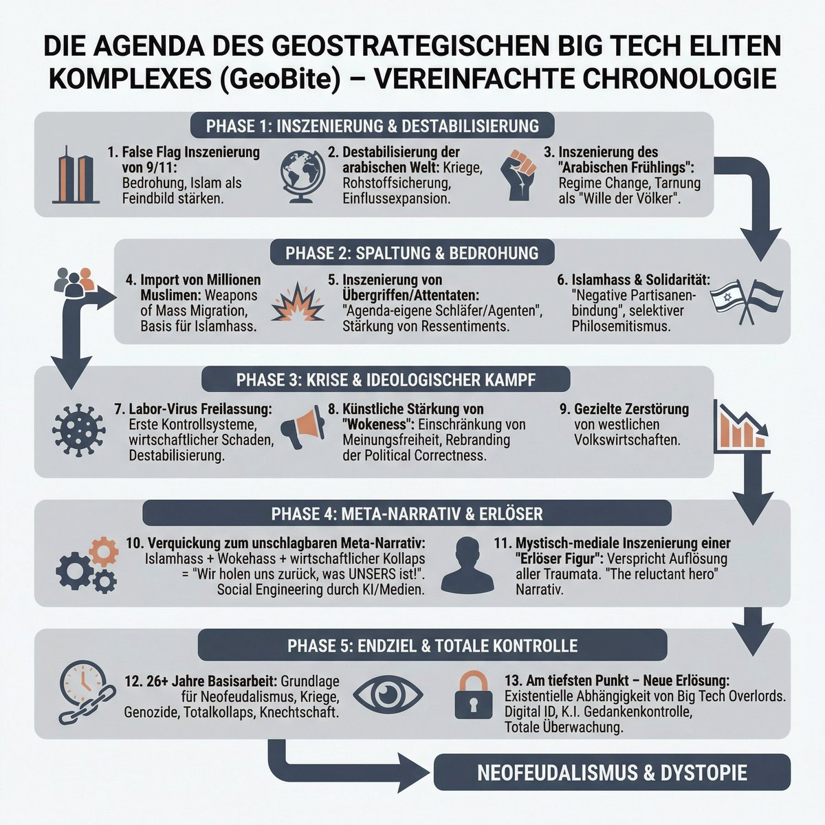All das kann gewollt existieren, um Widerstandskräfte zu brechen, Defätismus und Ohnmacht zu verbreiten, Zersetzung und Demoralisierung zu installieren, um dann, im Moment größter Schwächung und gefühlter Kapitulation, den Great Reset oder den Zugriff auf alles zu versuchen – von Eigentum bis Körper – und eine neue Form technokratischer Knechtschaft zu errichten.
